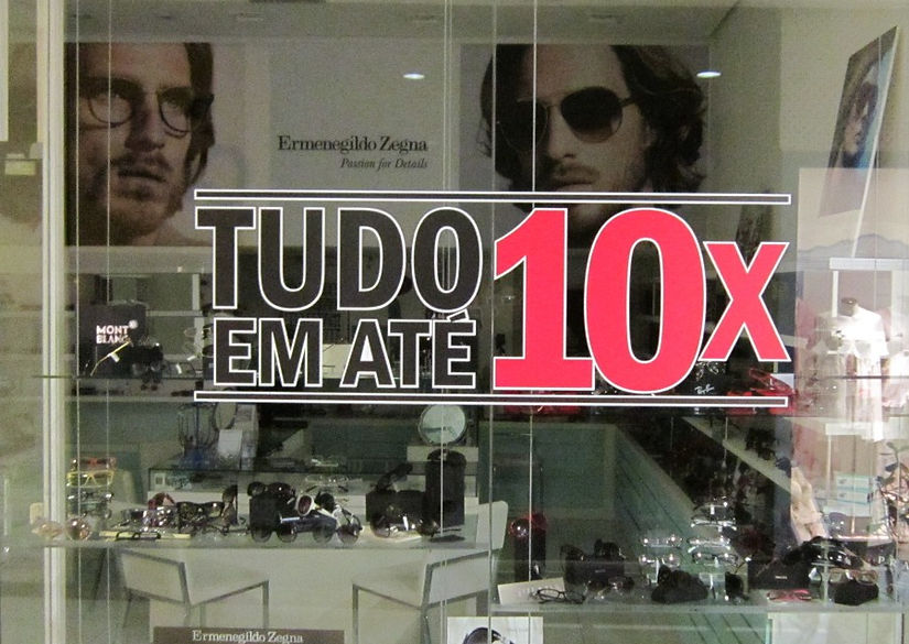 Adesivos aplicados em vitrine.